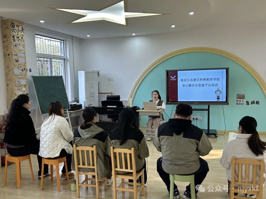 01 项目介绍为全面贯彻党的教育方针,落实立德树人的根本任务,南京江北新区特殊教育学校积极响应教育部美育浸润行动,在现有唱游与律动教室基础上添置音小圈音乐资源平台。南京怡享为进一步促进教师专业成长,为学校开展音小圈音乐资源平台培训。02 培训分享本次培训系统地讲解了特需儿童音乐教育、音乐治疗的核心理念与实...